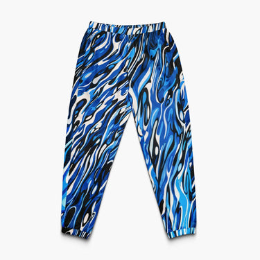Electric blues swirl in liquid rhythm. Abstract waves create dynamic motion. Contemporary fluidity in technical form.